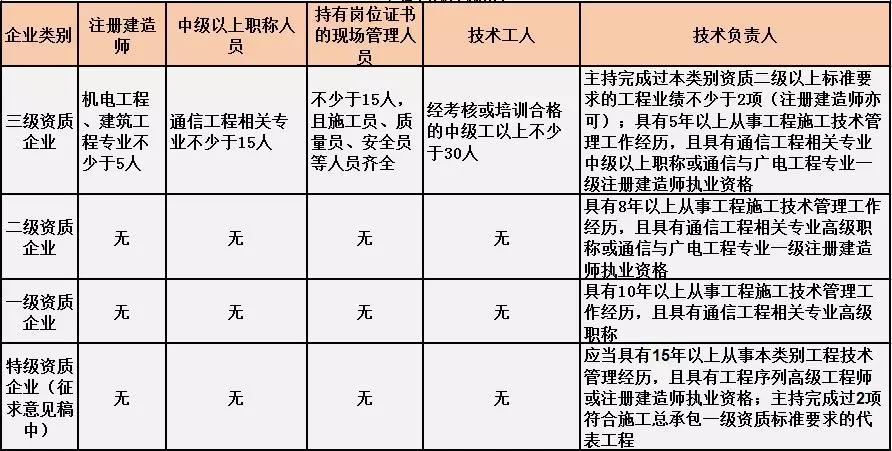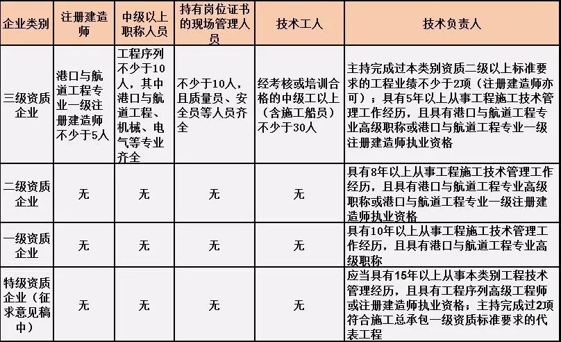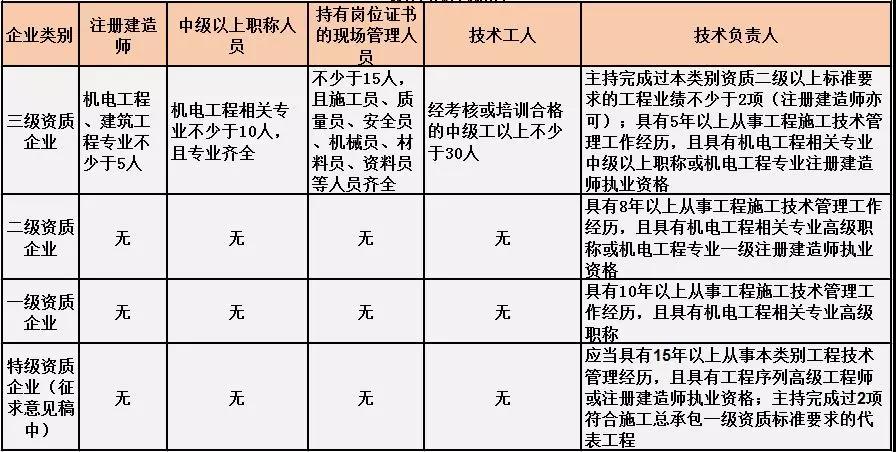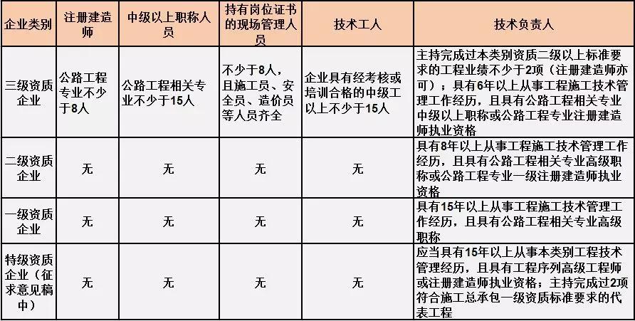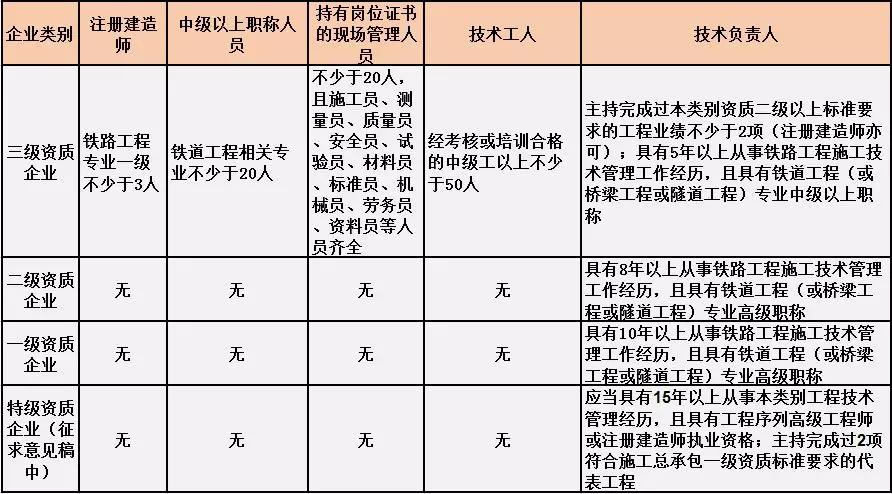 換句話說,并不是所有企業(yè)資質(zhì)都不要求有建造師等企業(yè)人員。施工總承包三級(jí)資質(zhì)企業(yè)對(duì)建造師等人員仍有要求,一級(jí)資質(zhì)、二級(jí)資質(zhì)企業(yè)保留技術(shù)負(fù)責(zé)人這一項(xiàng)要求,特級(jí)資質(zhì)另有規(guī)定。